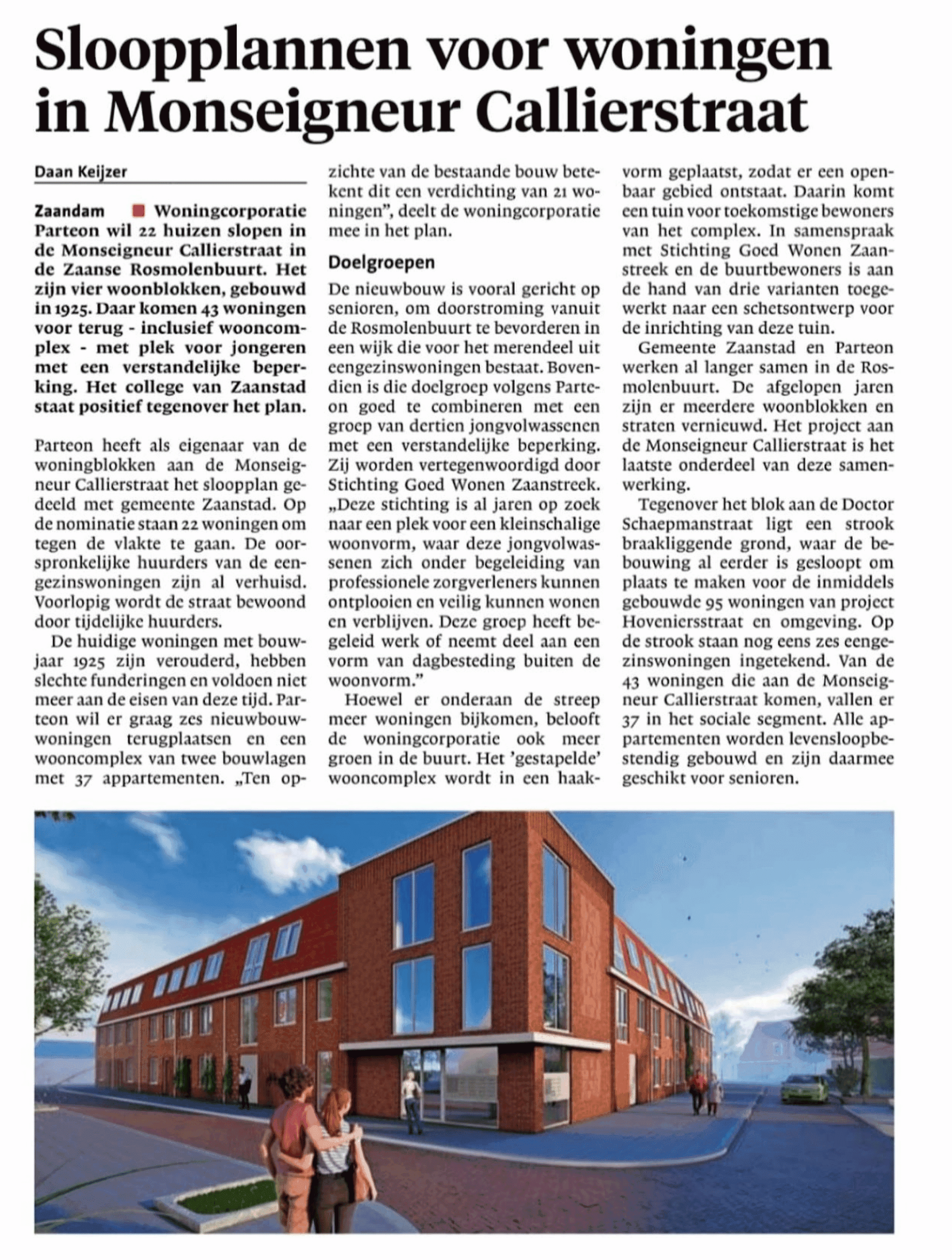 ‘Een eigen huis, een plek onder de zon’, zingt René Froger. Zo’n eigen stekkie willen jongvolwassenen met een verstandelijke beperking natuurlijk ook, maar dat is niet altijd even makkelijk. Het ouderinitiatief Goed Wonen Zaanstreek wil een woonproject voor deze groep opzetten en woningcorporatie Parteon helpt een handje.